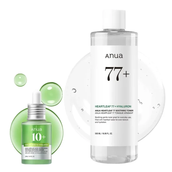 A calming 2-step routine designed to deeply hydrate, soothe irritation, and reduce redness. Featuring two of Anua’s most beloved products — the jumbo-size Heartleaf Toner and redness-relief Azelaic Serum — this set is ideal for sensitive, acne-prone, or reactive skin types.